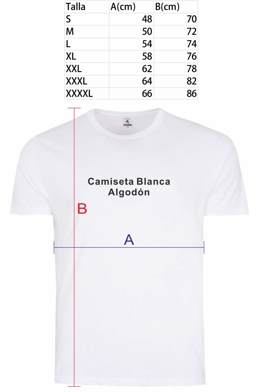 S 48cm Ancho X 70cm Alto, M 50cm Ancho X 72cm Alto, L 54cm Ancho X 74cm Alto, XL 58cm Ancho X 76cm Alto, XXL 62cm Ancho X 78cm Alto, XXXL 64cm Ancho X 82cm Alto, XXXXL 66cm Ancho X 86cm Alto