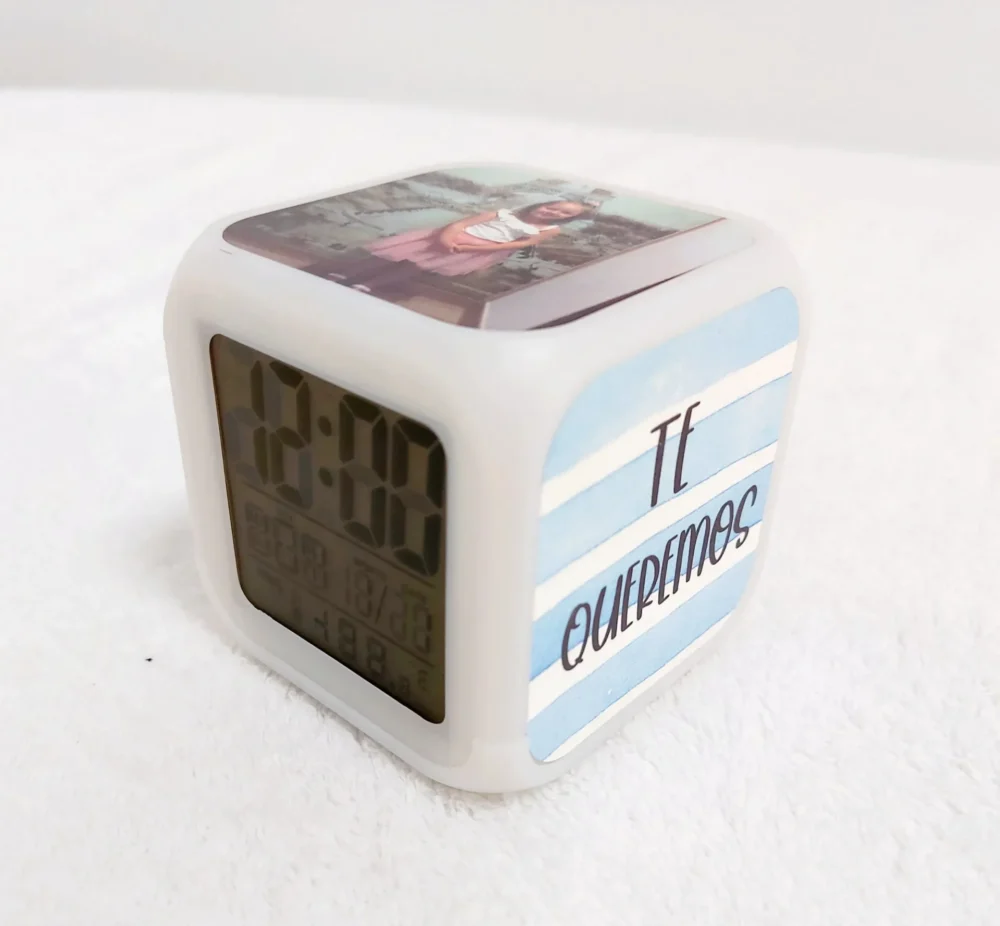 Reloj despertador con luz de colores
